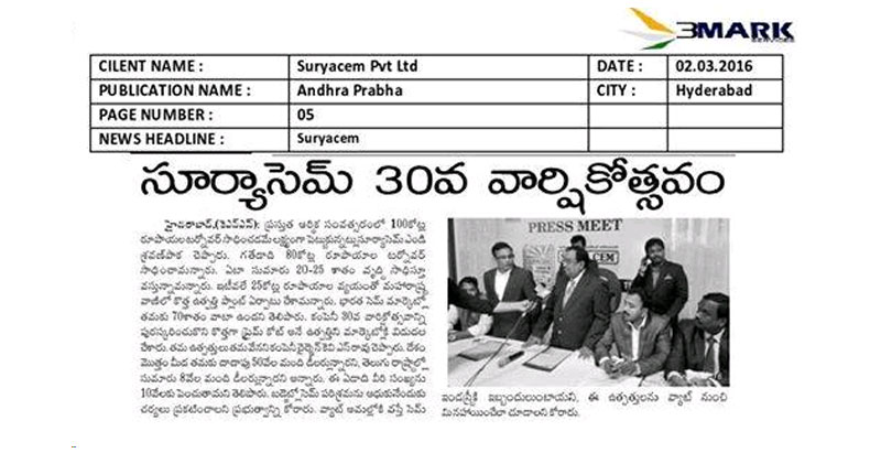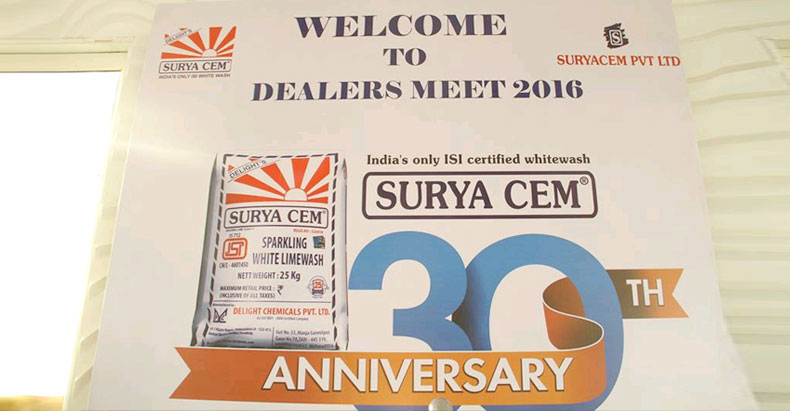 Surya Cem Private Limited and Delight Chemicals Pvt. Ltd. hosted Dealers Meet on the occasion of 30th Annual Celebrations on Feb 28, 2016 at N Convention Centre, Hi-Tech City, Hyderabad. Dealers Meet was to bring all the dealers on to the common platform for better interaction and exchange of ideas.